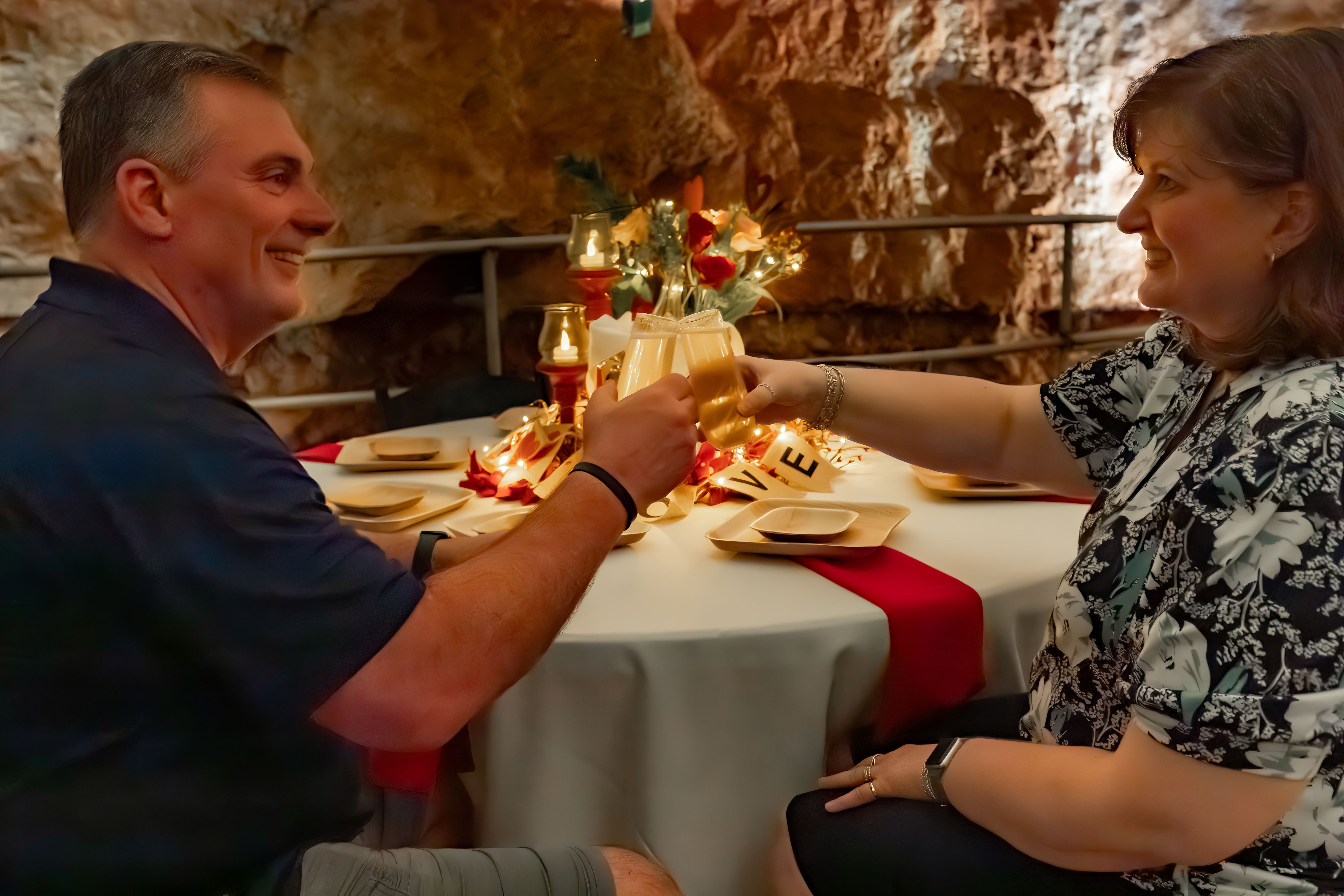 You'll start your evening above ground with a wine pairing. Then you and your Valentine will walk together through the spectacular Hidden Cavern.
